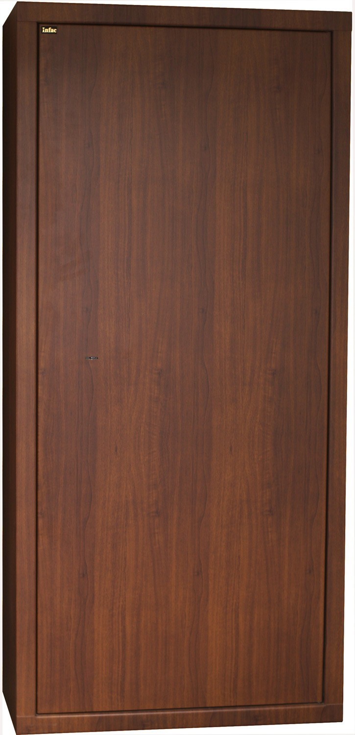 Disposant d'un système de verrouillage haute sécurité et réalisée dans un Acier supérieur d'épaisseur 2 mm, la gamme des armoires fortes Infac couleur Bois comporte différents modèles de coffres pour armes pouvant accueillir de 7 à 14 fusils ou carabines, avec ou sans lunettes.