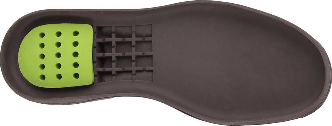 - Semelle d'usure : semelle amortissante en 3 densités de caoutchouc (amorti, stabilité et résistance à l'abrasion)