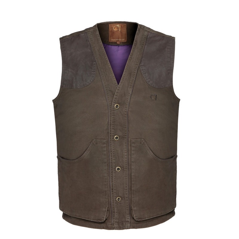 Le gilet de chasse Brenne de Club Interchasse est un gilet de chasse léger en tissu à porter sur un pull ou une chemise.