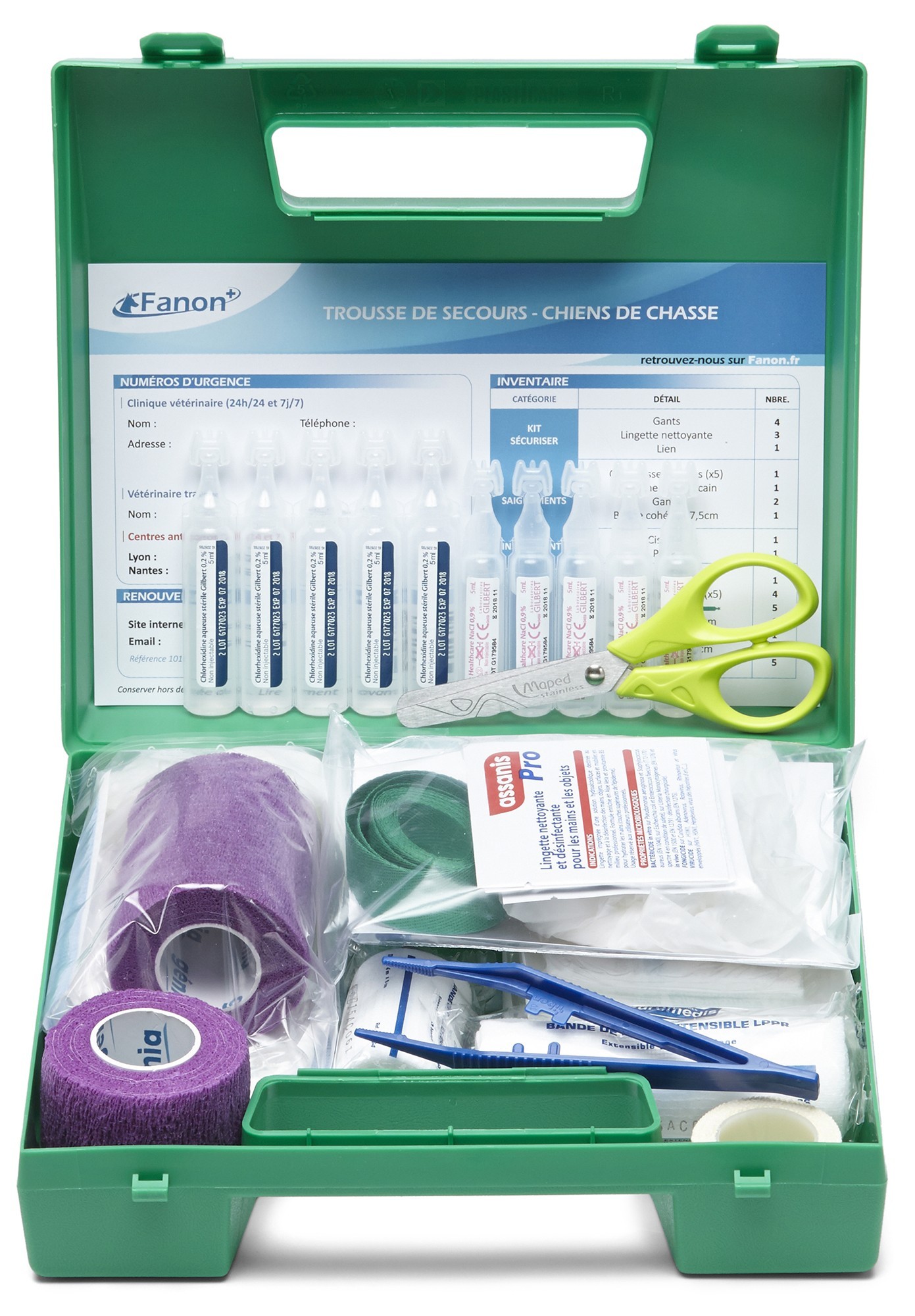 Cette mallette fabriquée en plastique dur et résistant adapté pour la voiture ou la cabane de chasse, est complète et indispensable à tous les possesseurs de chiens :