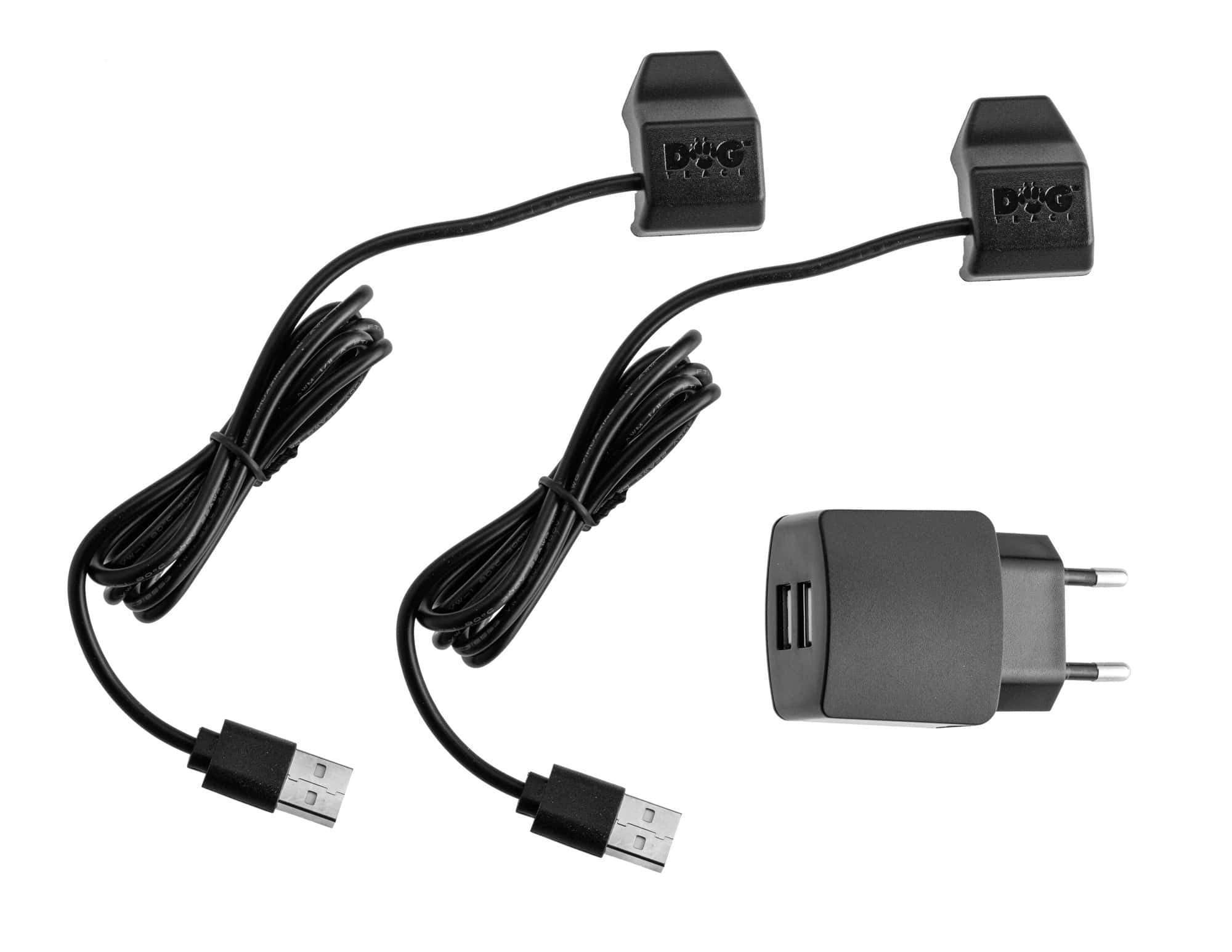 Double adaptateur secteur avec câbles et pinces USB, pour le chargement simultané du collier et du récepteur